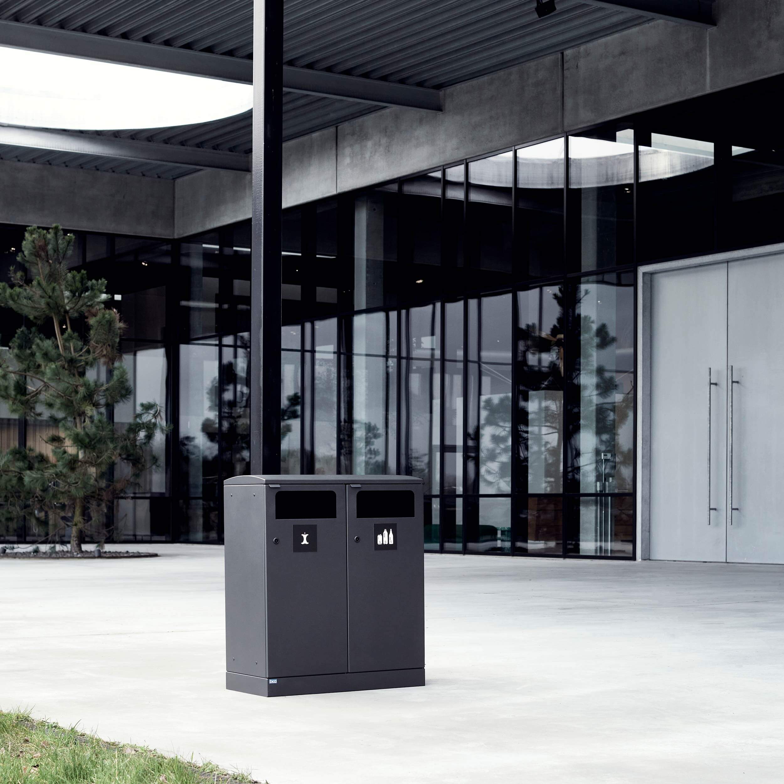Bica Modell 712 er et fleksibelt avfallssystem som sørger for enkel og brukervennlig avfallssortering utendørs. Beholderen er utformet med 2 fraksjoner med sideinnkast for enkel avfallssortering. Det er mulig å installere en metallklaff slik at fugler ikke kommer inn i avfallet. Avfallssystemet kommer med integrerte poseholdere, som kan trekkes ut når posen skal skiftes. Avfallssystemet har også frontdører for enkel tømming som kan åpnes med nøkkel. Bica Model 712 kan kombineres med andre Bica-modeller i samme dybde.