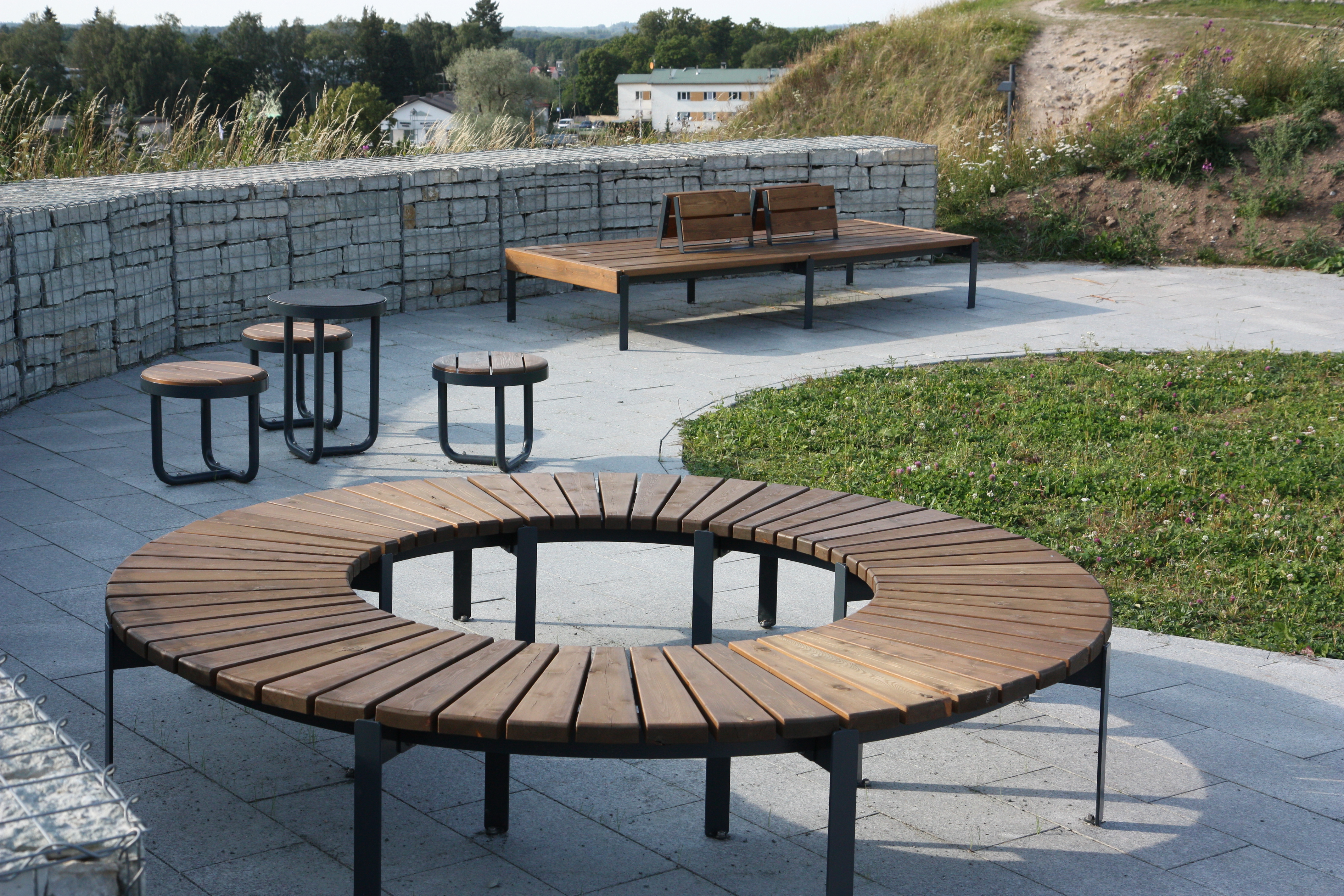 En stilig sirkelformet benk som passer til lekeplasser, kjøpesentre eller parker. Flott og solid kvalitet for nordisk miljø.