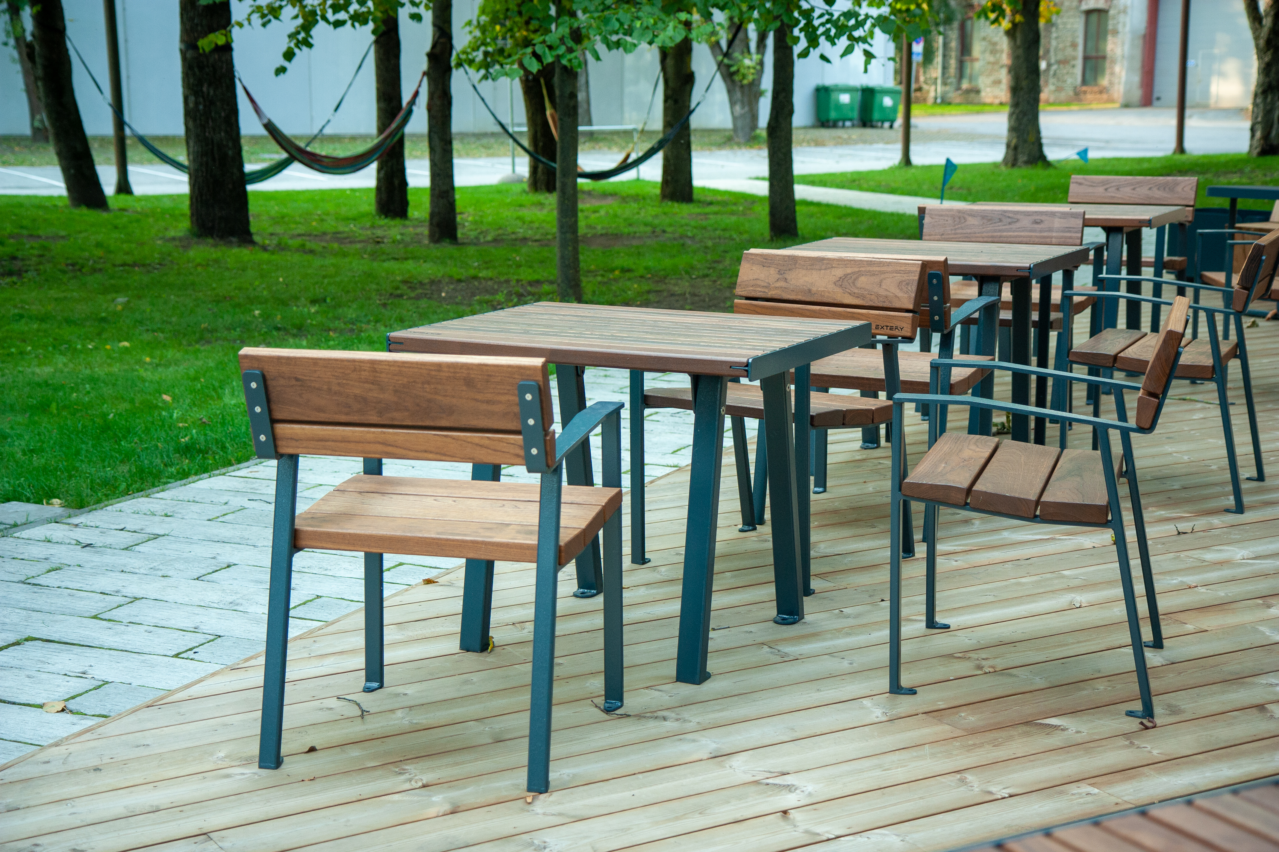 Linn stol og tilhørende møbler er ideelle for å supplere et historisk miljø med et moderne preg, samtidig som den er moderne nok til å stå frem troverdig i et urbant miljø.